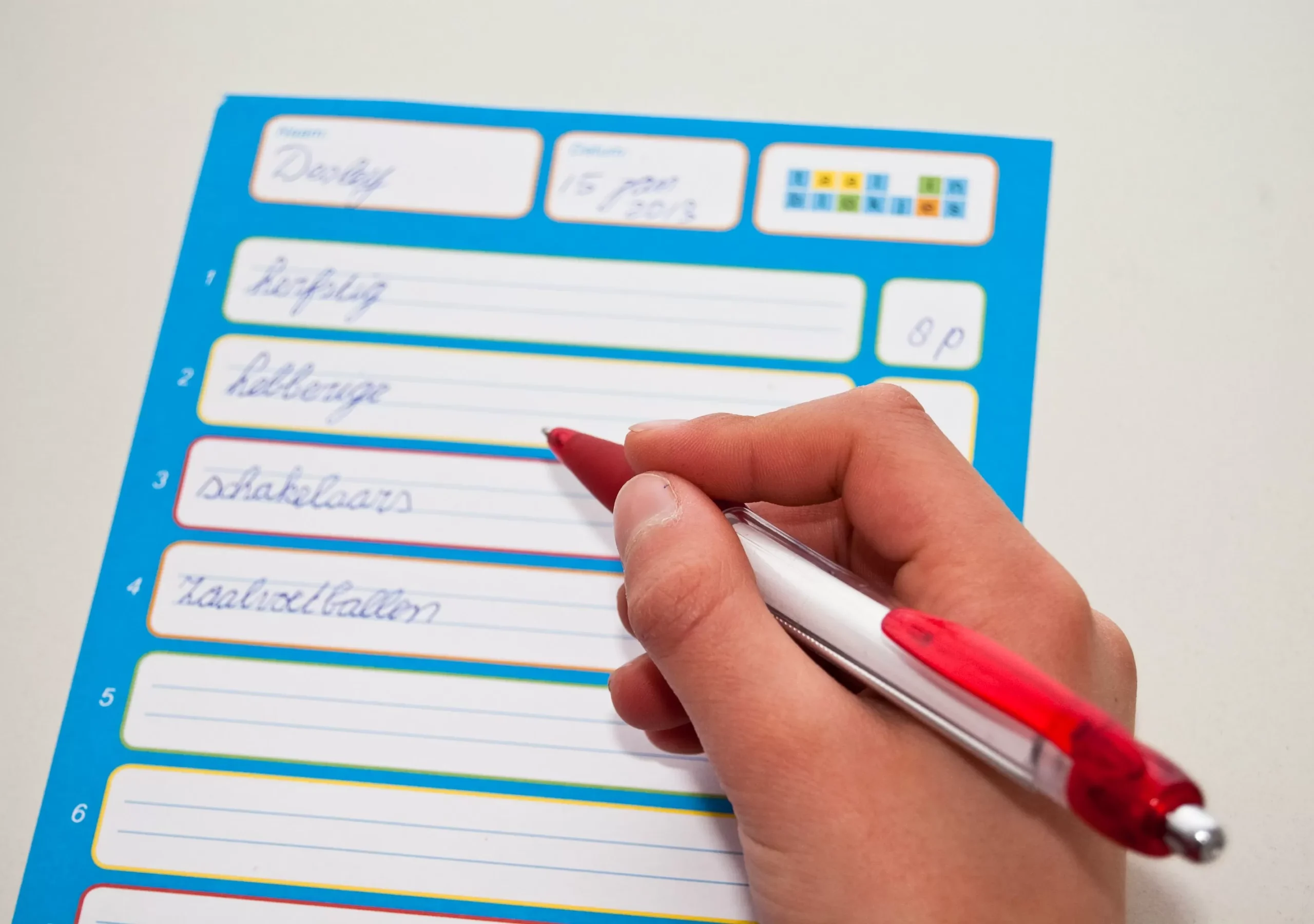 Daarbij moeten zij hard nadenken over de spelling, de ‘moeilijke’ woorden immers extra beloond en het is fijn om te winnen. Pas als de leerlingen de woorden goed opschrijven, tellen de punten. Zij geven zichzelf een dictee!