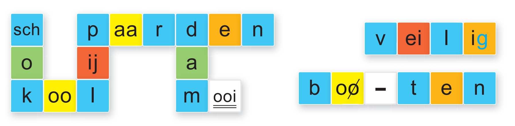 Verder kaartjes met een lettergreepstreepje om de klankgroepen aan te geven.